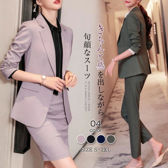 レディース洗える 2way スーツ セットアップ(パンツ + スカート) 長袖テーラードジャケット + テーパードパンツ / タイトスカート リクルート向け オフィスフォーマル 上品 おしゃれ